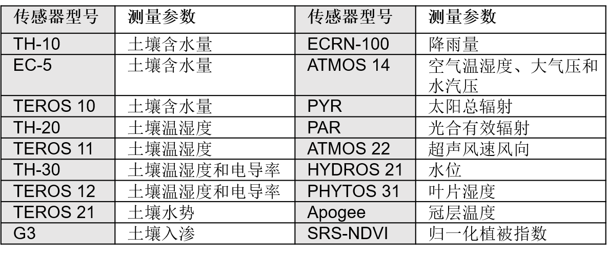 TH5可兼容以下型號的傳感器: