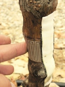 可測(cè)量8~29mm直徑的莖干,適用于葡萄、獼猴桃等藤本植物,其莖干的特點(diǎn)是多結(jié)節(jié),且相鄰兩個(gè)結(jié)節(jié)間距很短。測(cè)量時(shí),傳感器可以纏繞在植物莖干上。該傳感器很薄,柔韌性強(qiáng),用透氣性較好的彈力尼龍纖維做阻熱材料,其較短的豎向長度非常便于安裝,而且更易貼合具有不規(guī)則生理彎曲的莖干。型號(hào)如下: