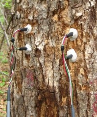 由于莖干的生長和植物的自愈功能,特別是松柏類樹木分泌的粘液,都有可能造成安裝探針的孔洞變窄。長期下去,會(huì)導(dǎo)致探針變形,不僅影響讀數(shù),而且當(dāng)需要更換測(cè)量對(duì)象時(shí),會(huì)在拔出探針時(shí)造成探針損毀。因此,建議用戶定期進(jìn)行維護(hù)(視樹木生長情況和樹種而定),一般建議2 周左右。通常情況下,只需拔出TDP探針重新安裝即可,嚴(yán)重時(shí)需要擴(kuò)孔甚至更換安裝位置。