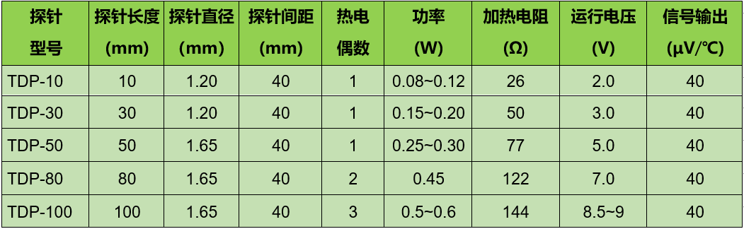 TDP探針有多種不同長度的型號(hào)可選,如TDP-10、TDP-30、TDP-50等,探針長度分別為10mm、30mm、50mm。需要根據(jù)測(cè)量莖干的粗度來選擇長度合適的探針。